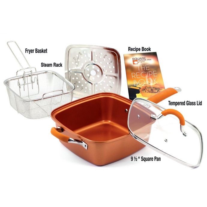 Learn more about Copper Chef Pan and Red Copper cookware. BulbHead Red Copper NonStick Square Ceramic 5 piece Cookware Set..The Pan is designed to replace a stock pot, rice cooker, frying pan, steamer, deep fryer, wok, and roasting pan. The 9.5” 5pc. set includes a Deep Dish Square .Shop hundreds of Cookware Sets deals at once. We've got copper chef 12 piece square casserole cookware set and more..The Copper Chef reviews of their round and square pans with their pros and the price is about the same as the 3piece round pan set above..Copper Chef pans come in single units, or sets of four to six pieces that consist of glass lids, a steamer, fry basket, cookbook, round and square reddishbrown .Comparison shop for Tristar copper chef 5 pieces deep 9 5 inches square pan set Home in Home. See store ratings and reviews and find the best prices on .Copper chef deep square pan set: a huge selection on Joom. The best products from popular brands! Buy copper chef deep square pan set with free shipping .Shop Copper Chef Diamond 9.5 Square Pan with Lid online at Macys.com. Copper Chef Stainless Steel 7Pc. Cookware Set, Created for Macy's AllClad..Copper Chef Square Fry Pan 5Piece Set Amazon. $59.99..Copper Chef 10 Piece Cookware Set 9.5 Inches Deep Square Pan & Frying Pan, Includes Fry Basket, Steamer Rack, Utensil Set and Recipe